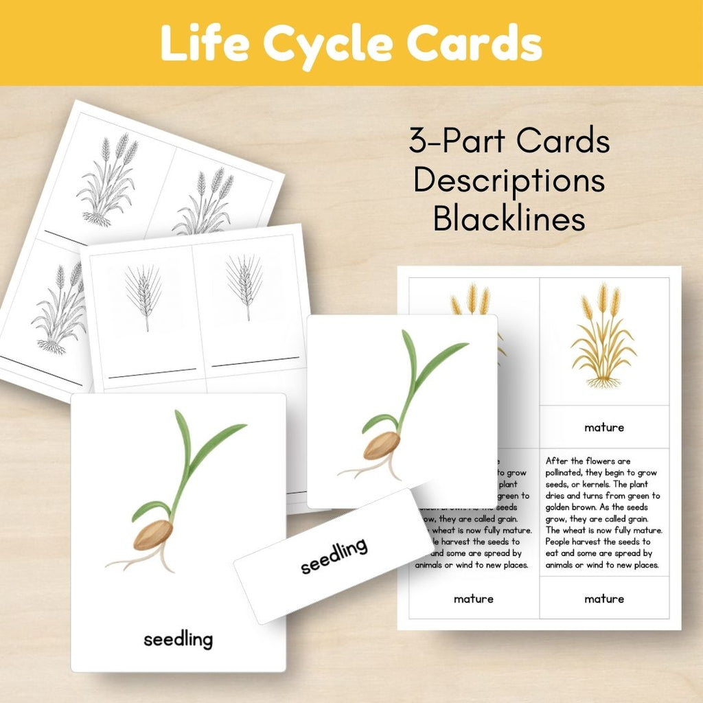 • Montessori-style 3-part cards for each life cycle stage: image, label, and control card