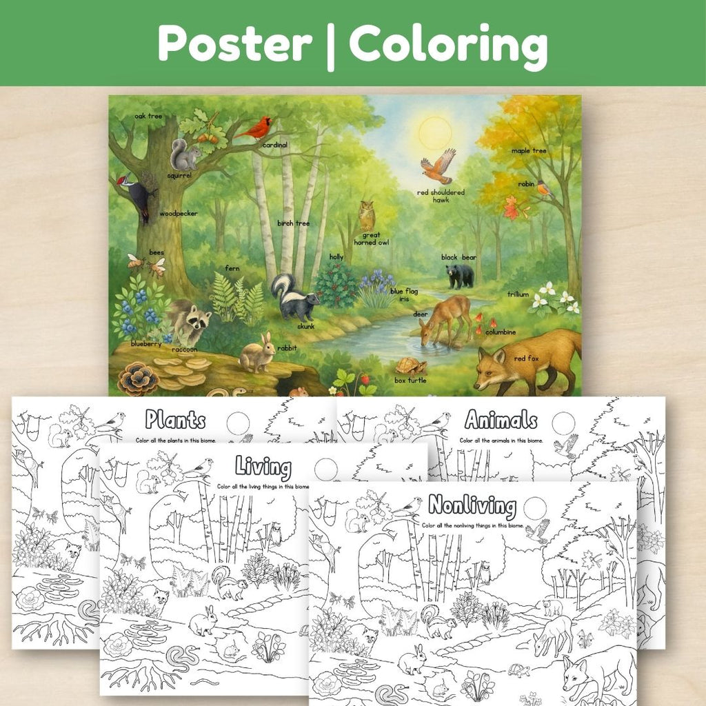 This Temperate Forest Biome Intro Mini Unit introduces students to the temperate forest habitat and reinforces the essential parts of a biome, including living and nonliving elements. It includes a nonfiction read-aloud, student mini book, poster, coloring pages, and sorting activities.