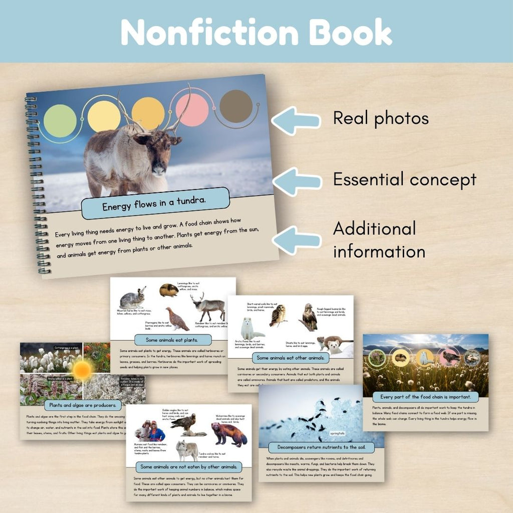 Use this food chains set to support your tundra biome work. Students will explore how energy moves through the tundra and how organisms depend on one another. Students will build food chains, sort organisms by diet and trophic level, and visualize the flow of energy through the ecosystem.